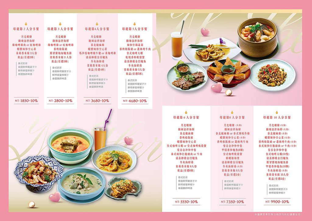 僅提供「母親節美味分享餐」及加點服務